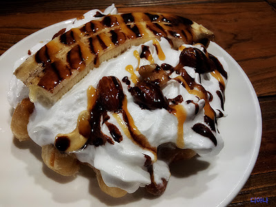 Y de ahí a seguir estudiando en el bene con una rica y sana merienda a base de gofre de frutos secos con plátano. La fruta es muy importante...